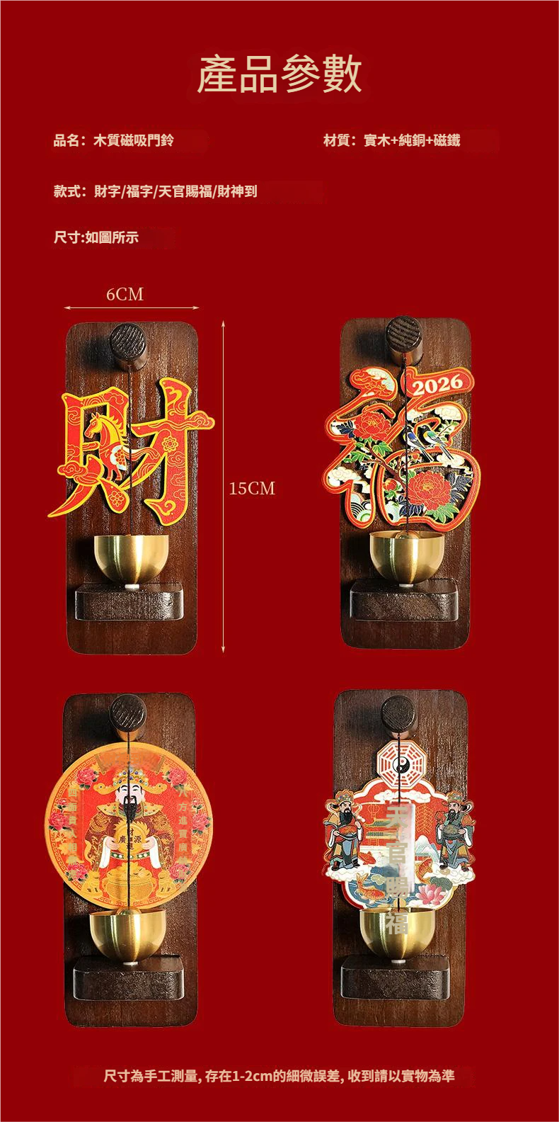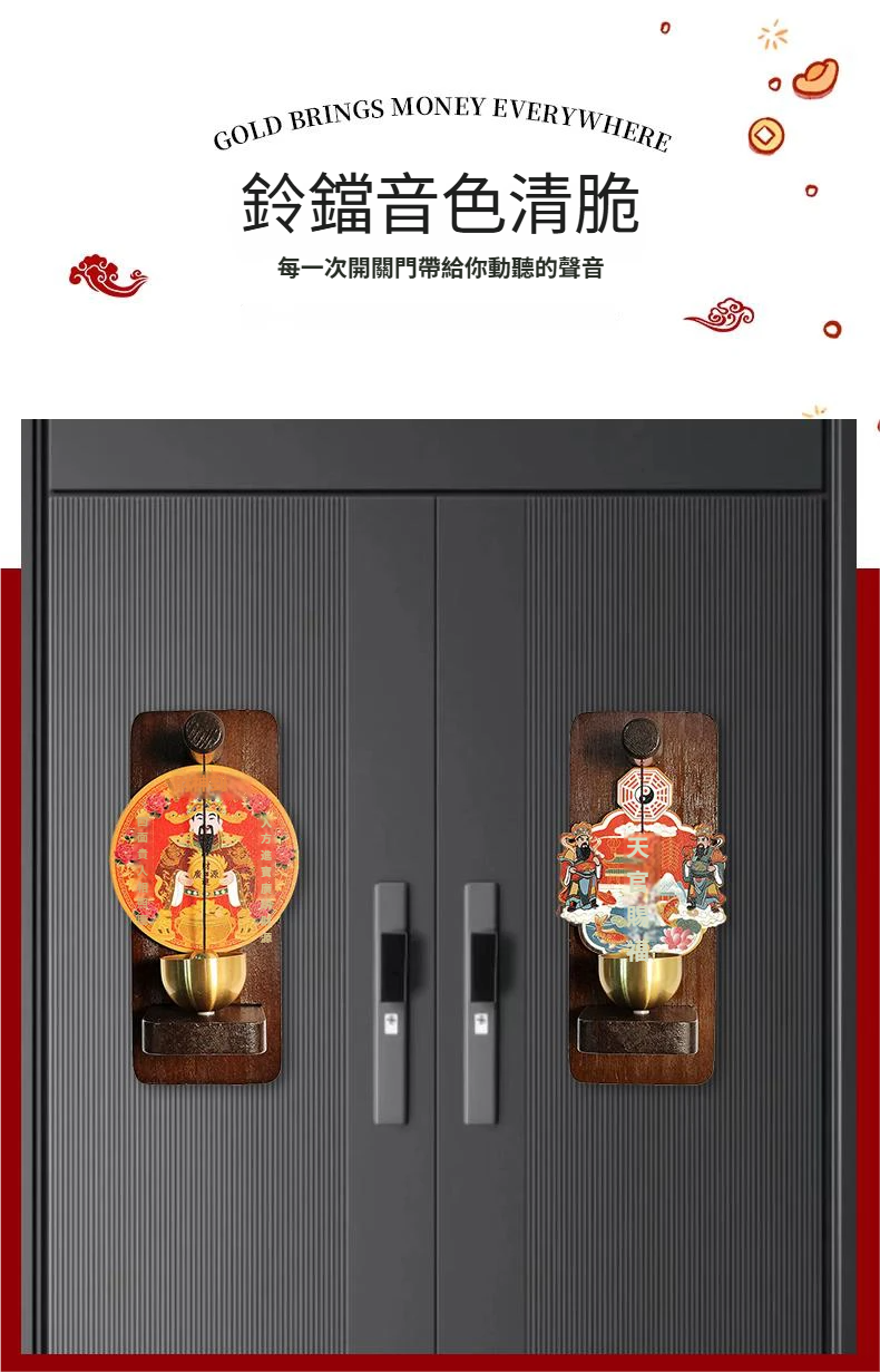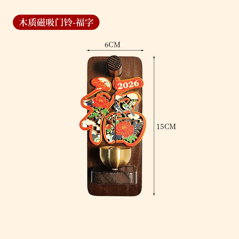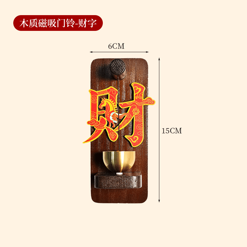 木製磁吸門鈴冰箱貼 招財納福 財源廣進