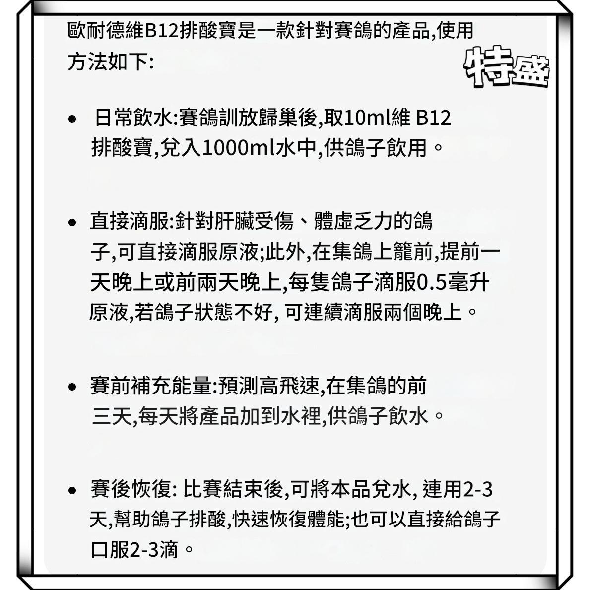 歐耐德維B12鴿子排酸寶,250毫升賽信鴿補充乳酸,比賽緩解疲勞促恢復