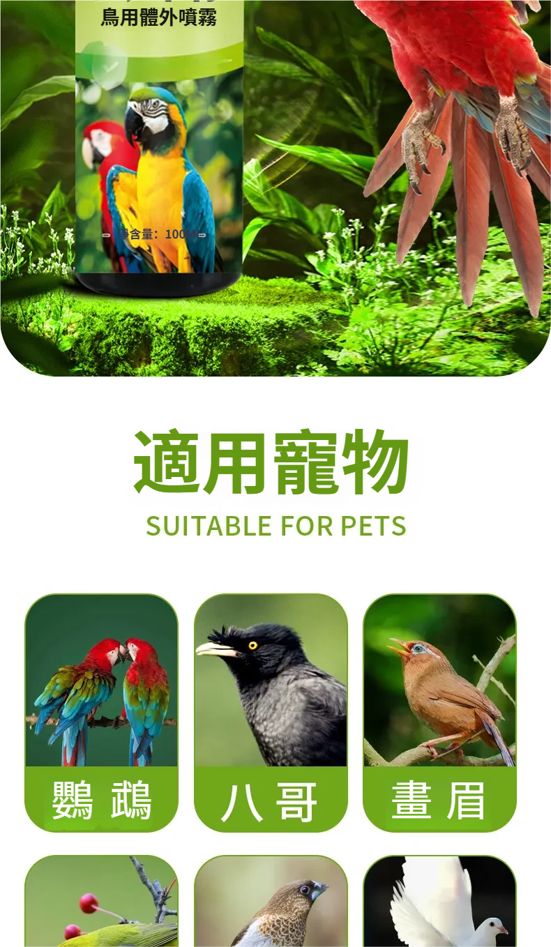 【店長推薦】鸚鵡驅蟲噴霧6入組- NT$1298(贈2瓶鳥用益生菌)