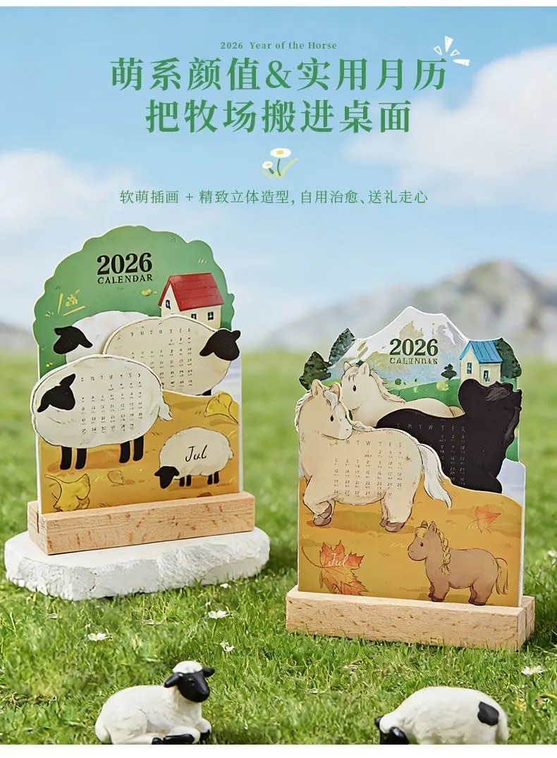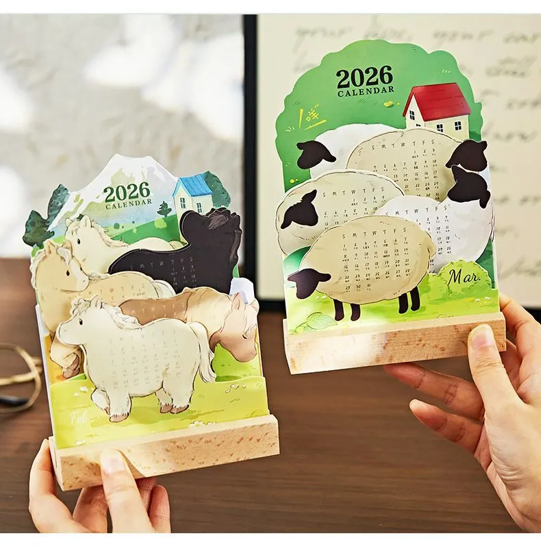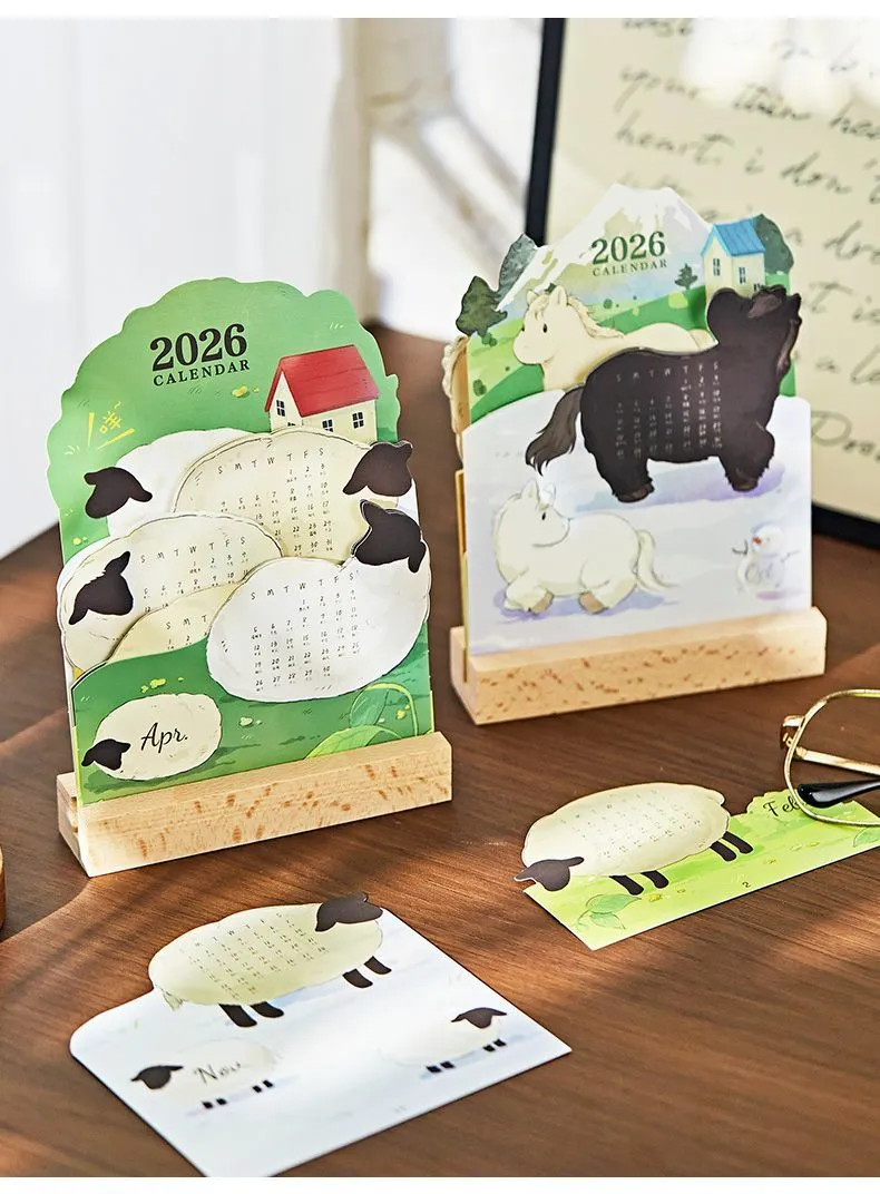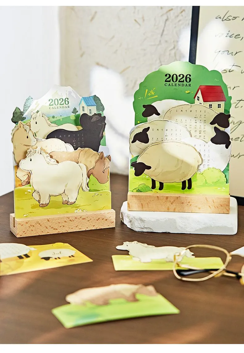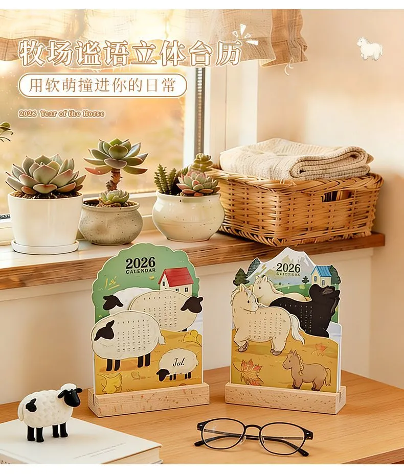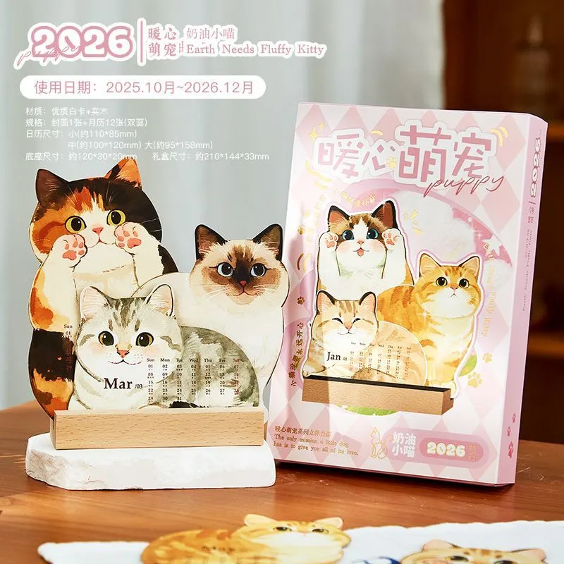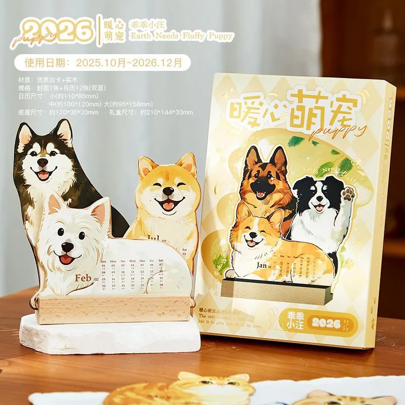 2026萌寵立體插畫日曆 卡通可愛高顏值寵物桌面創意擺件