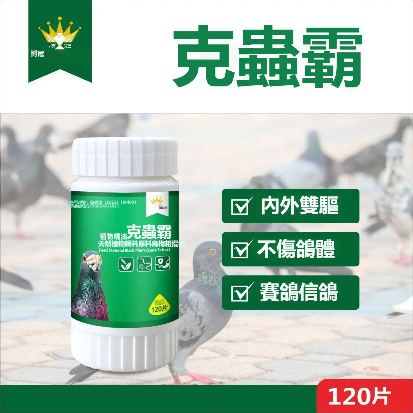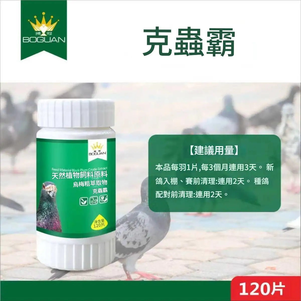 搏冠鴿藥剋蟲霸片劑120粒,賽鴿信鴿子用品清理體內蟲打蟲博冠驅蟲