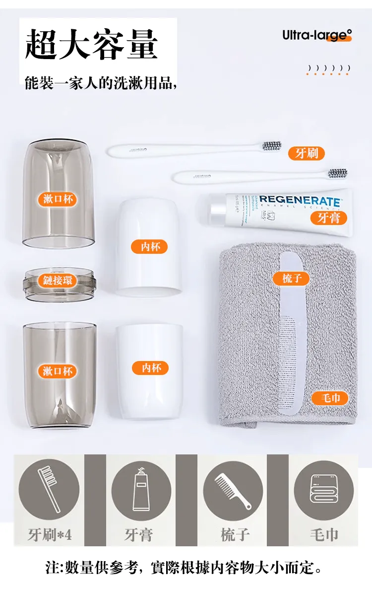 【旅行漱口杯套裝】四合一漱口杯❤️妳的家庭旅行必備清潔套裝