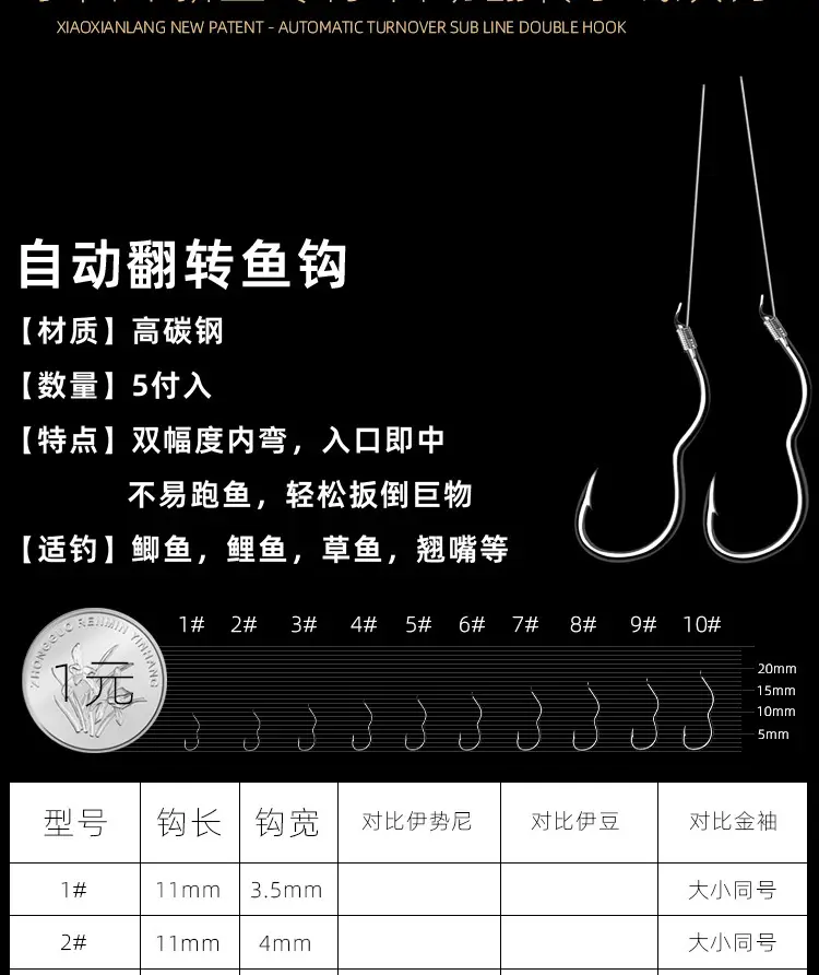 自動翻轉魚鉤 鉤尖鋒利 刺魚迅猛 提高中魚率
