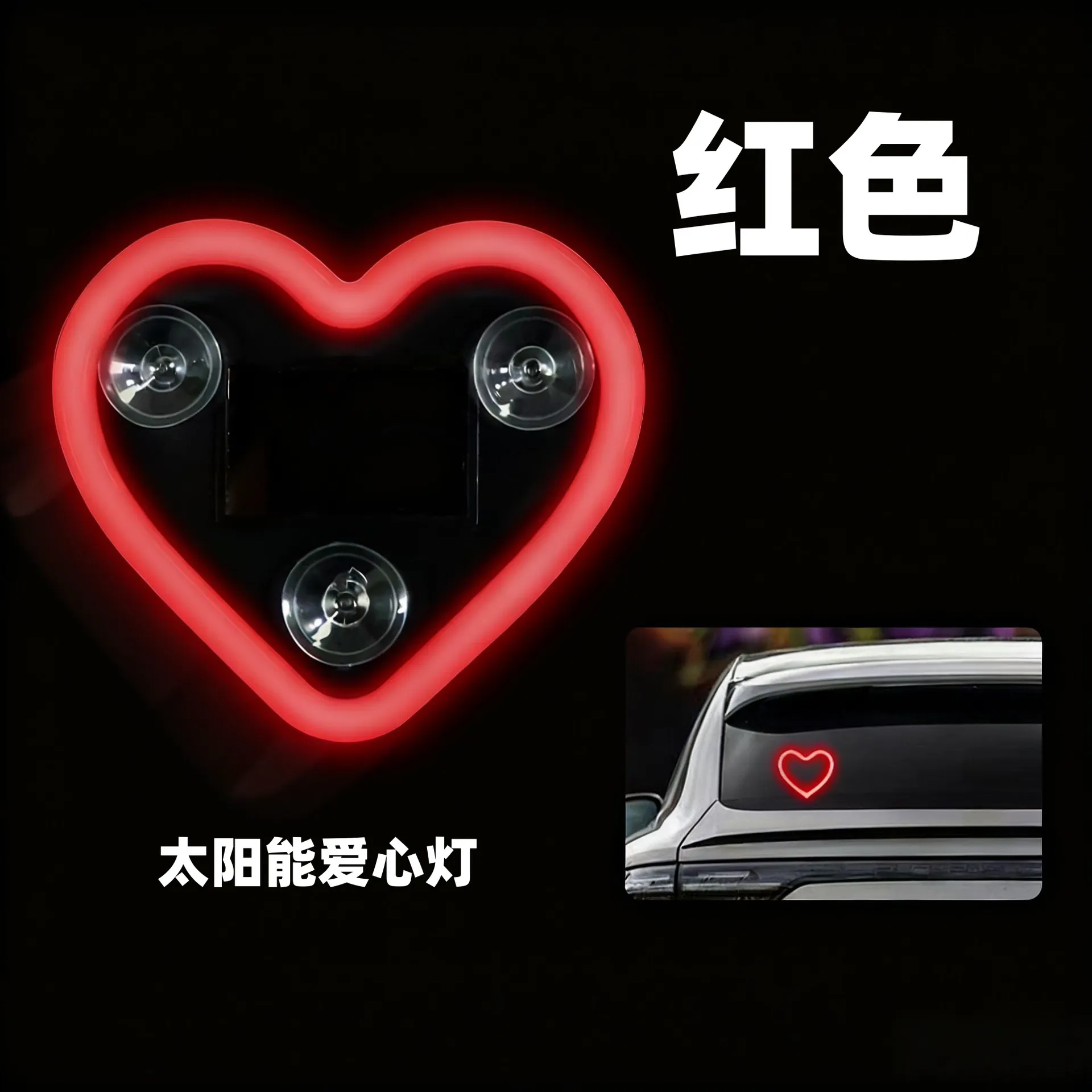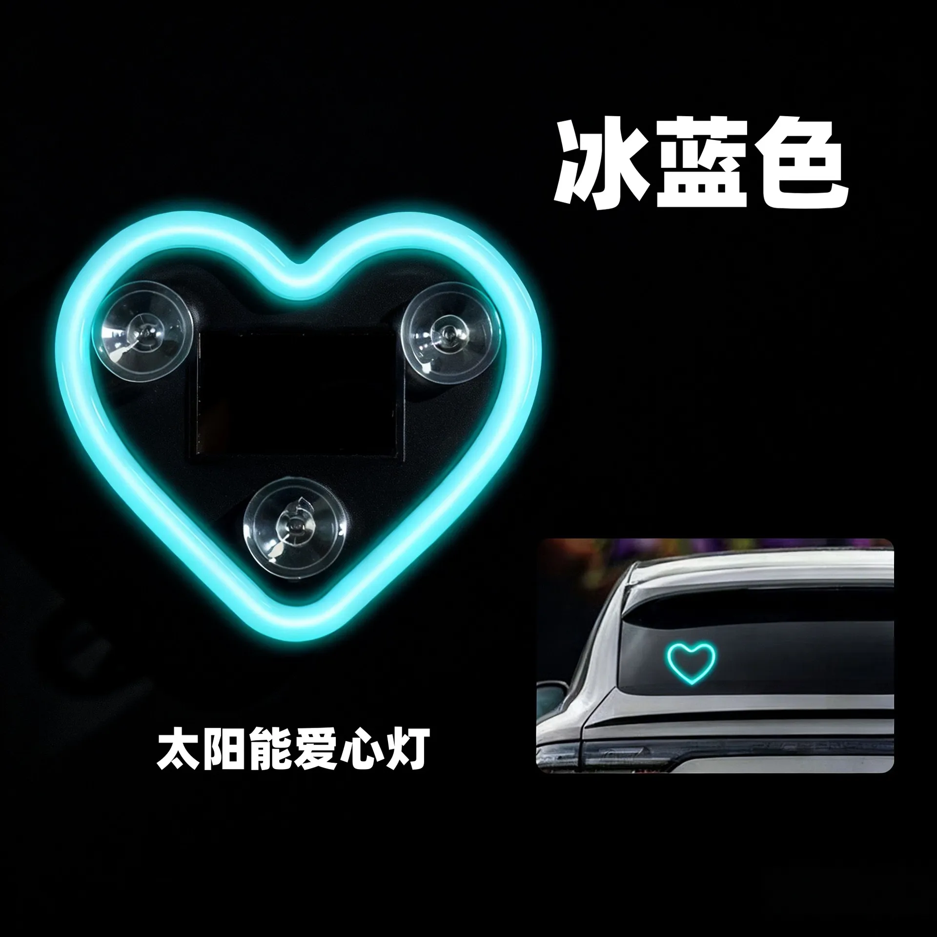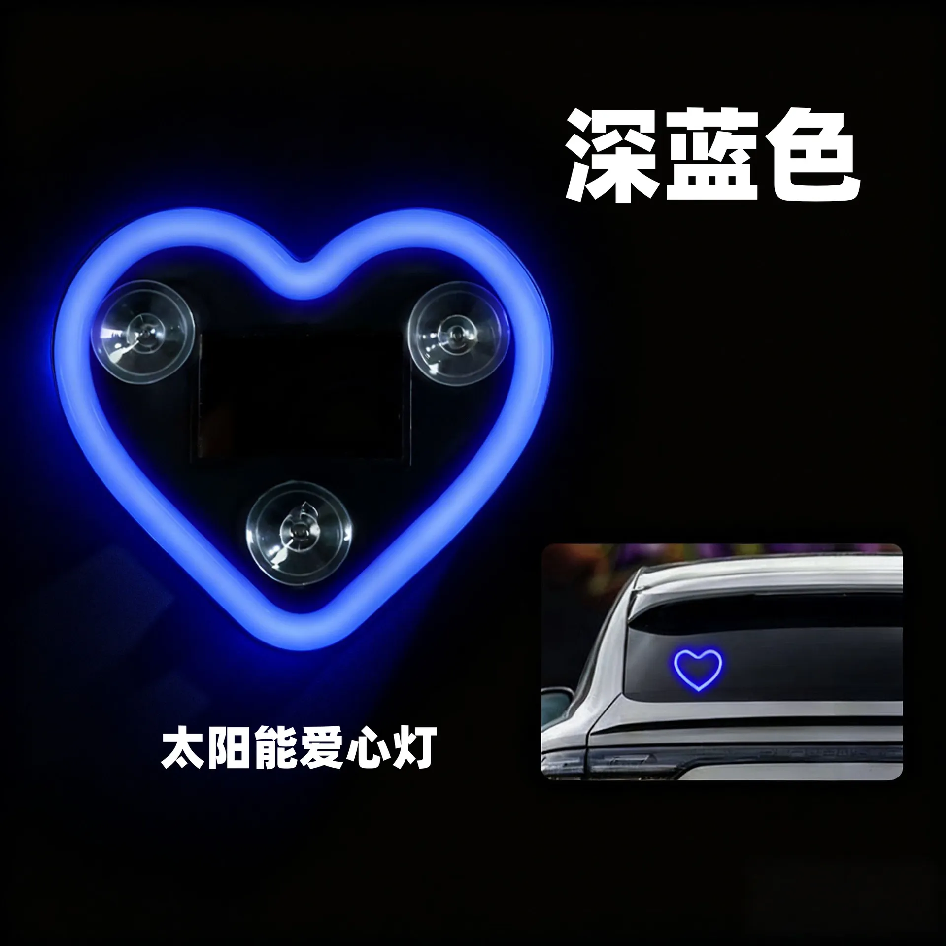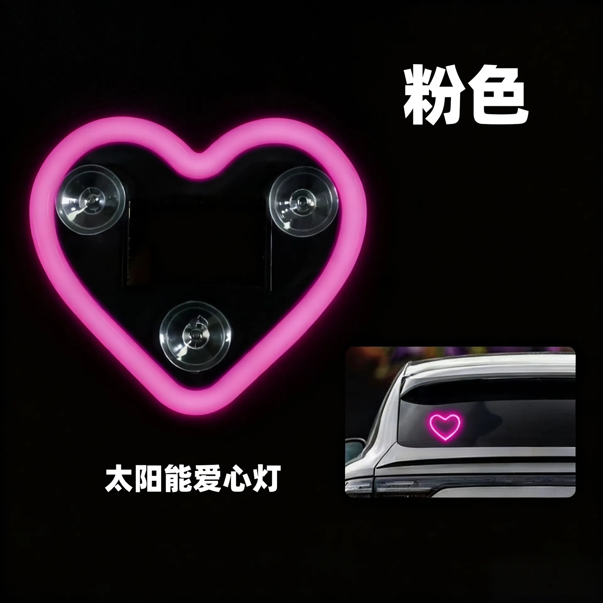 🔥汽車太陽能免接線LED三角窗愛心燈無線霓虹發光C柱氛圍車載 內裝潢
