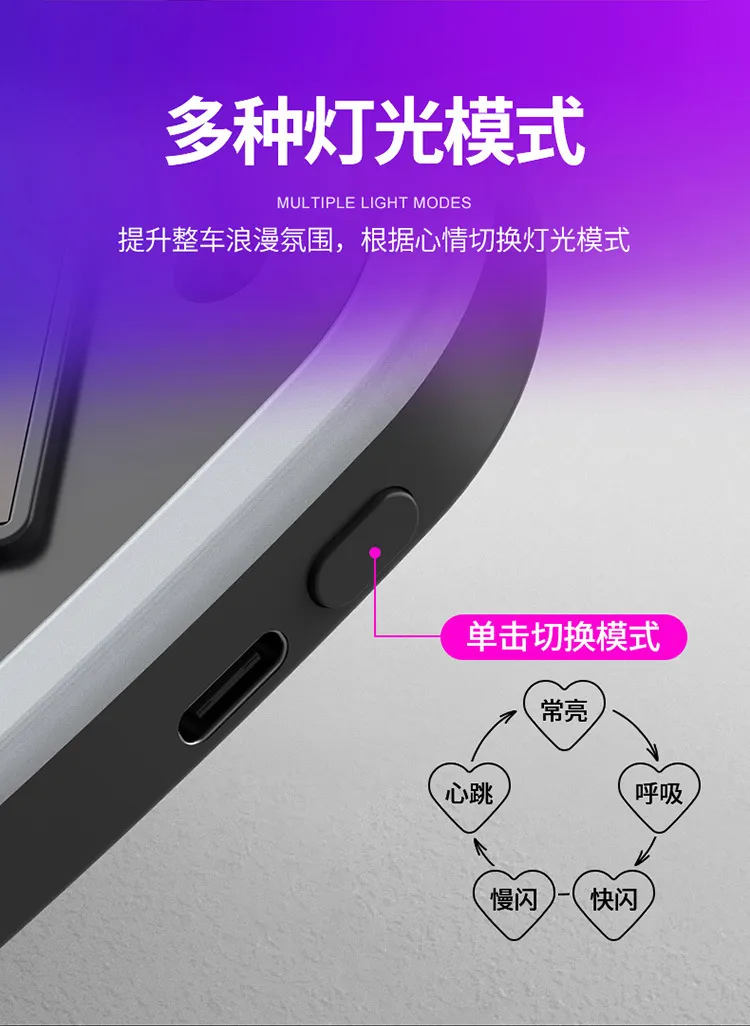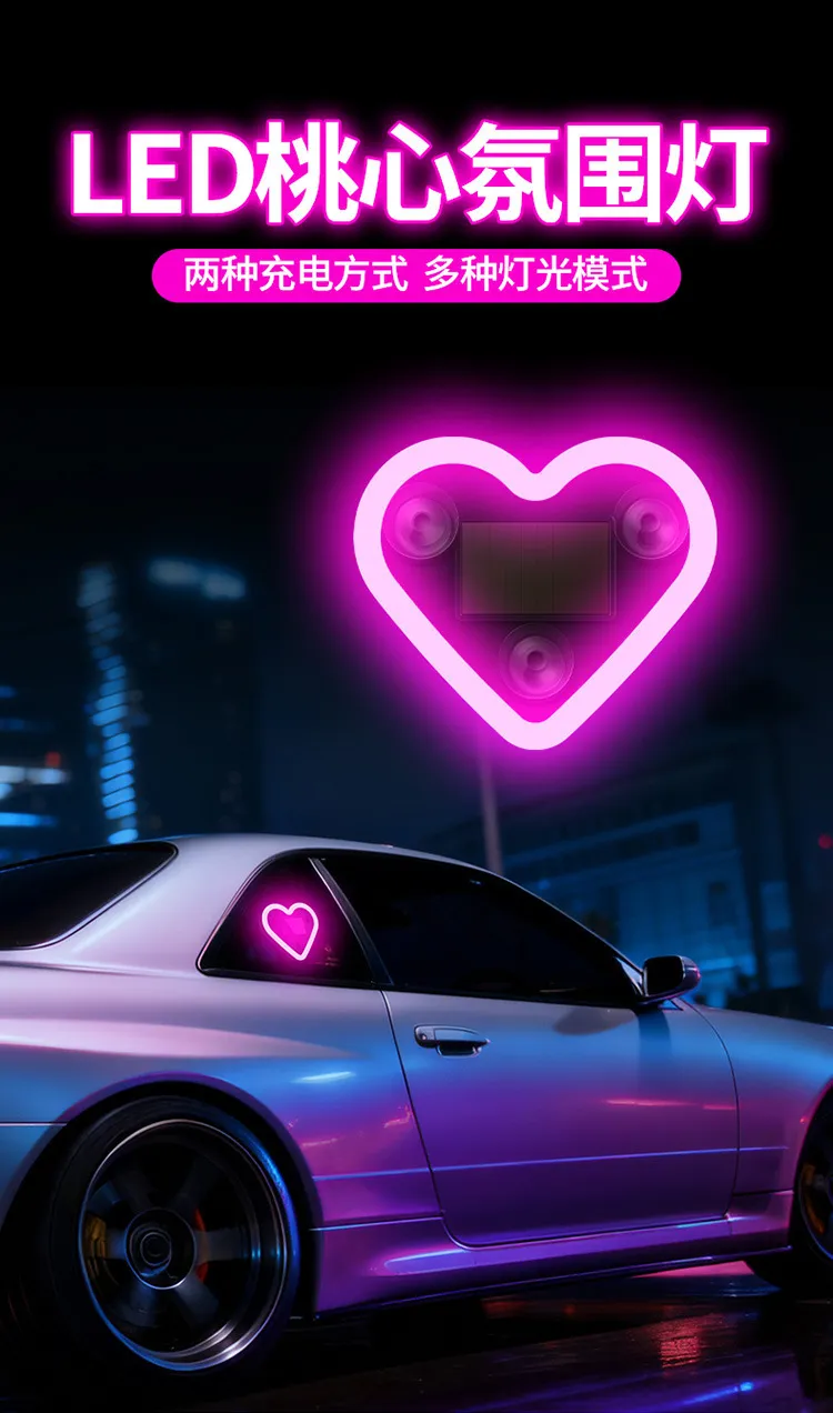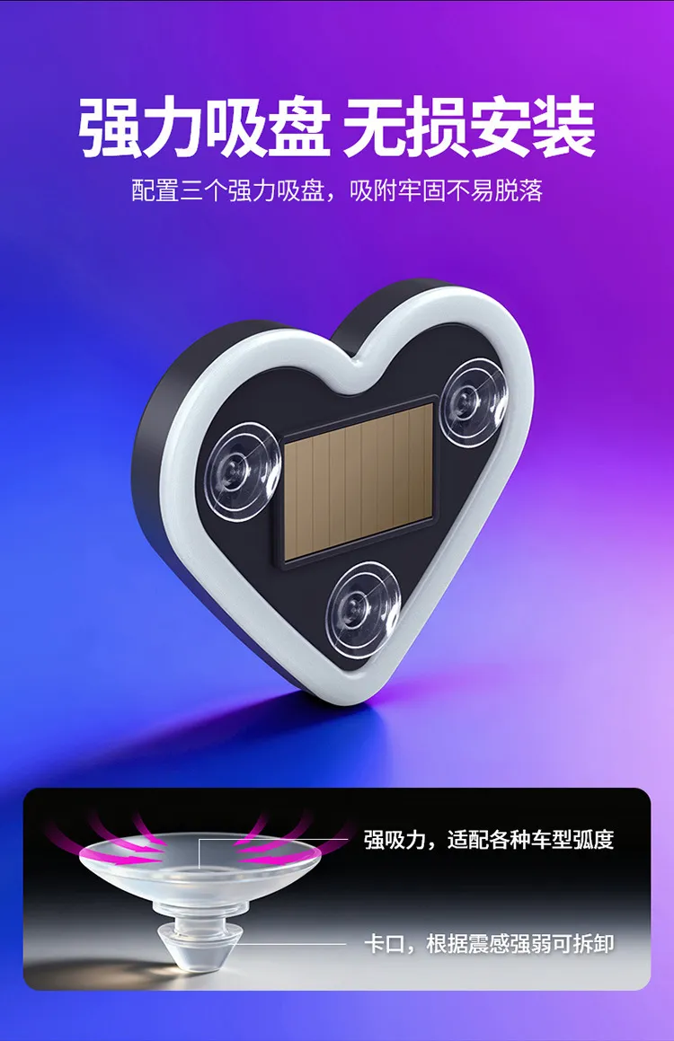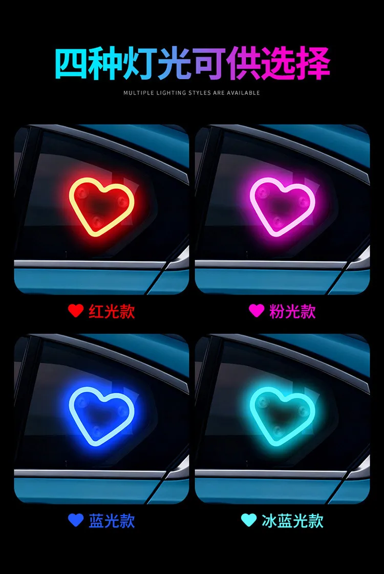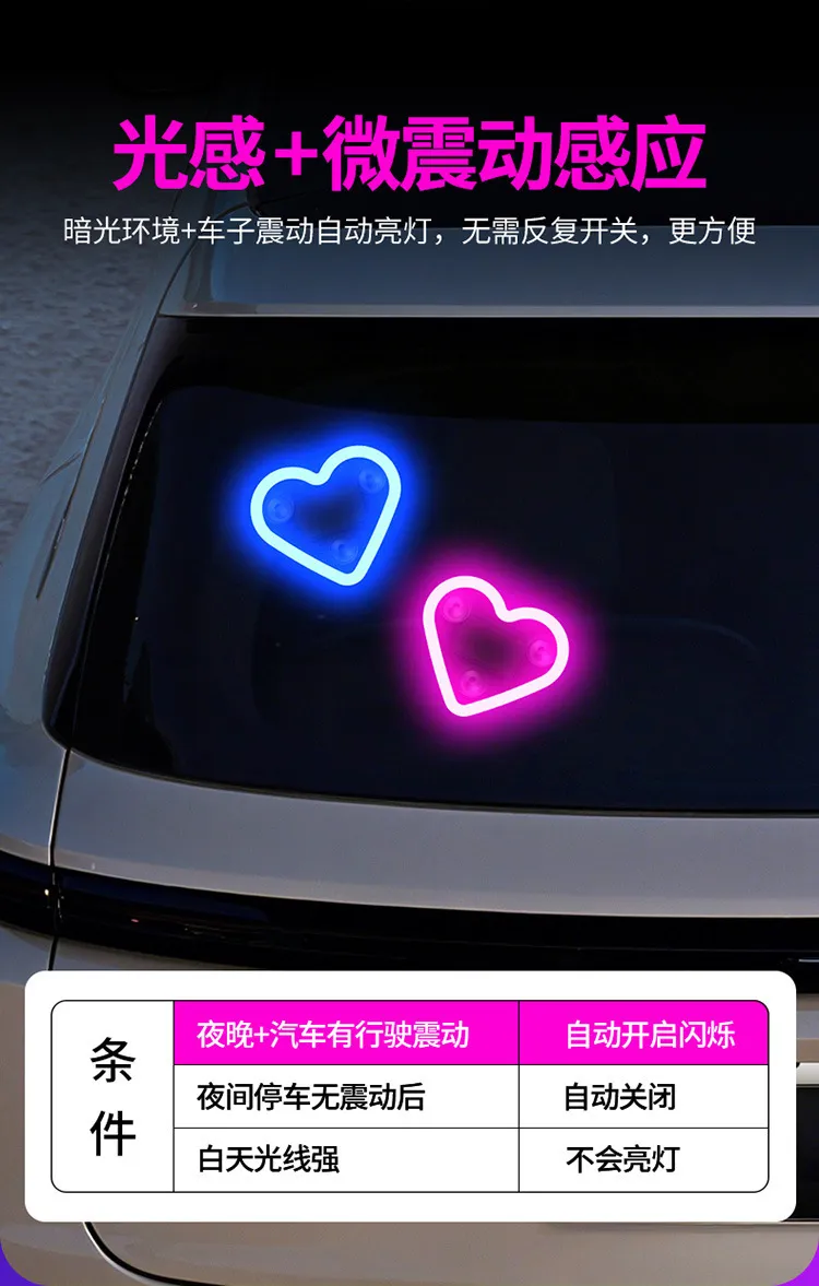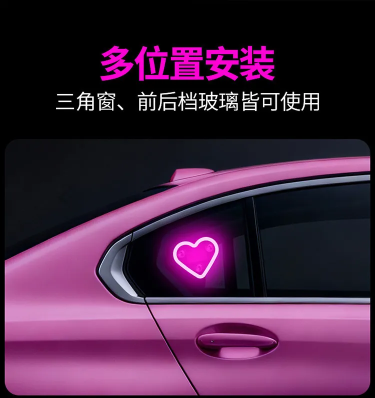 🔥汽車太陽能免接線LED三角窗愛心燈無線霓虹發光C柱氛圍車載 內裝潢