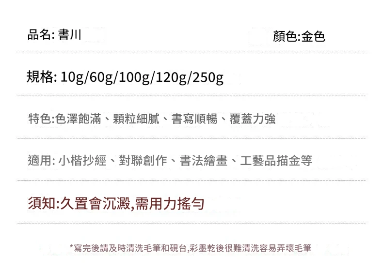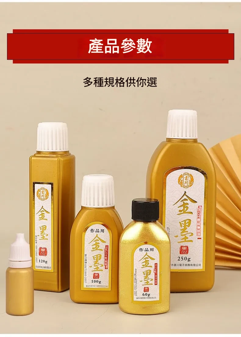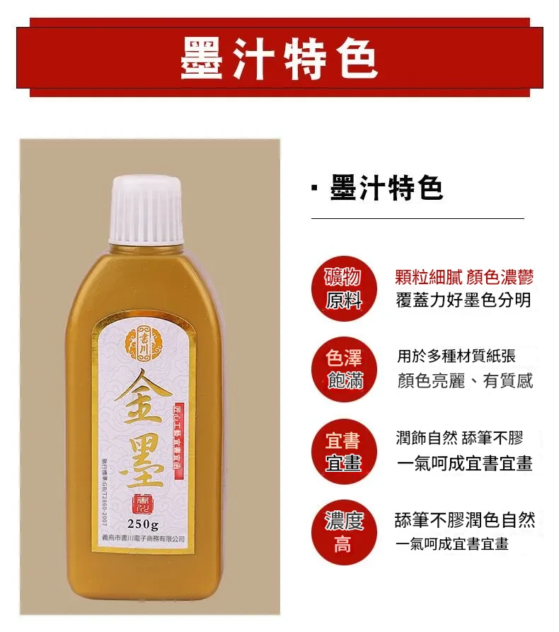 【120g裝】墨汁金墨金色墨水書法毛筆書畫創作墨對聯處理抄心經專用金色墨液